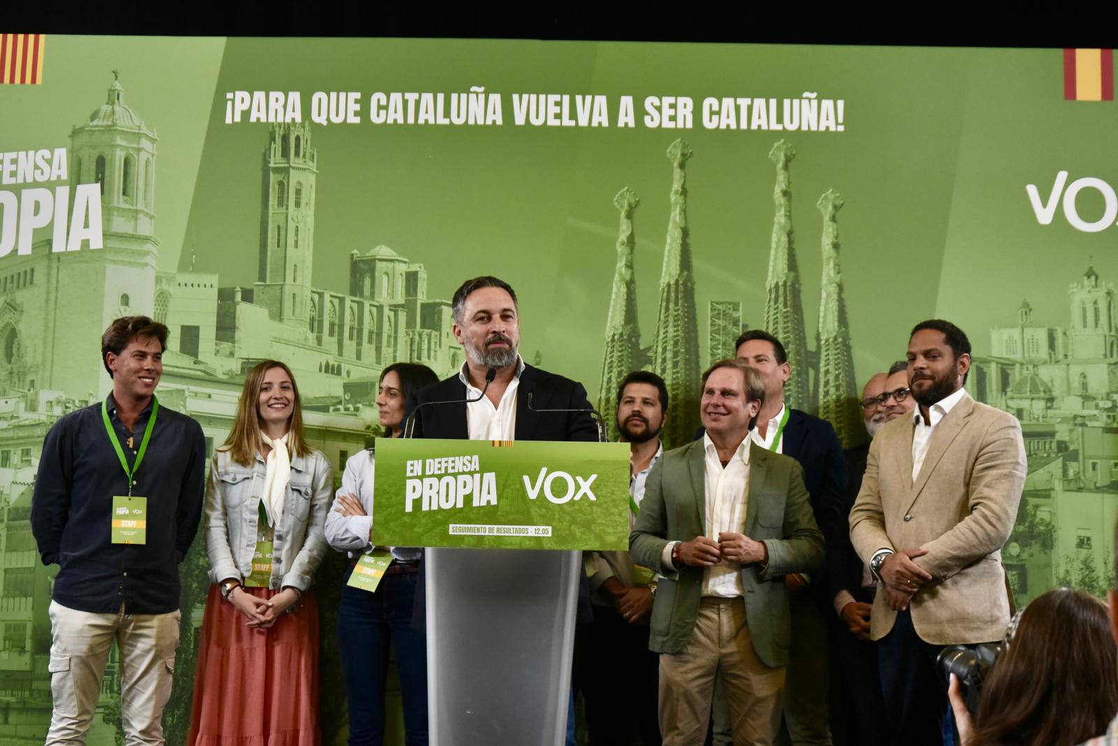 Lo ha dicho este domingo sobre las 22.45 horas junto al candidato de Vox a las elecciones catalanas, Ignacio Garriga, desde la sede electoral de Vox en Barcelona.