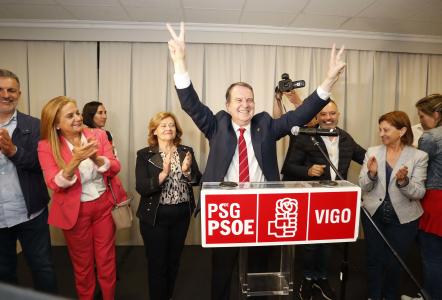 El candidato socialista ha puesto en valor que su lista haya obtenido 19 ediles, uno menos que en 2019, aunque no ha hecho mención a ese desgaste, ni a la pérdida de casi 20.000 votos. Por contra, ha exclamado: «Le ganamos 19 a 5 al PP, 19 a 3 al BNG, y 19 a 8 a los dos juntos».
