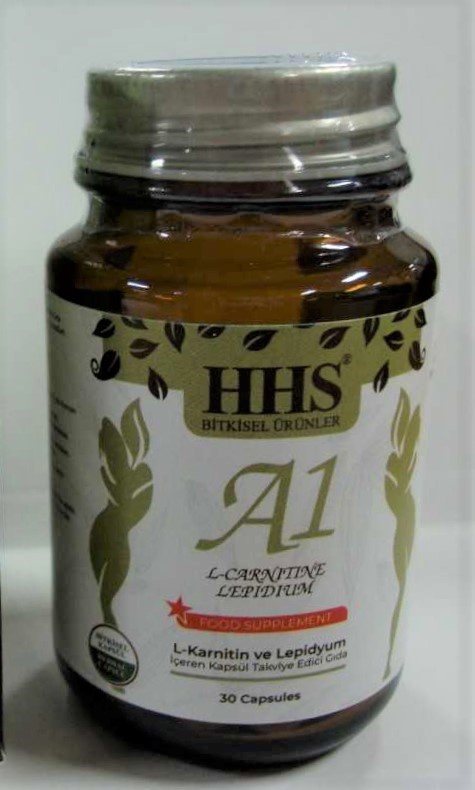 HHS A1 L-Carnitine Lepidium cápsulas está comercializado por la empresa HHS (Turquía), según se indica en su etiquetado, como complemento alimenticio, pese a no haber sido notificada su puesta en el mercado a las autoridades competentes, incumpliendo lo previsto en la normativa vigente para este tipo de productos, recuerda la AEMPS.