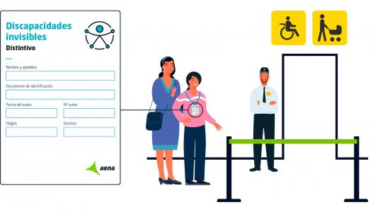 Aena ha puesto en marcha una iniciativa para mejorar la atención de los pasajeros con discapacidades invisibles. Se trata de un distintivo que se puede solicitar a través de la web de Aena y que permite al personal del aeropuerto identificar a las personas que lo portan con el objetivo facilitar y mejorar su experiencia aeroportuaria.