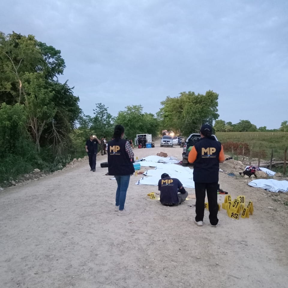 La Fiscalía de Guatemala ha indicado que ha procesado «el sitio donde ocho personas, seis hombres y dos mujeres, fueron asesinadas con arma de fuego», y donde «fueron levantados 198 indicios balísticos de distintos calibres».