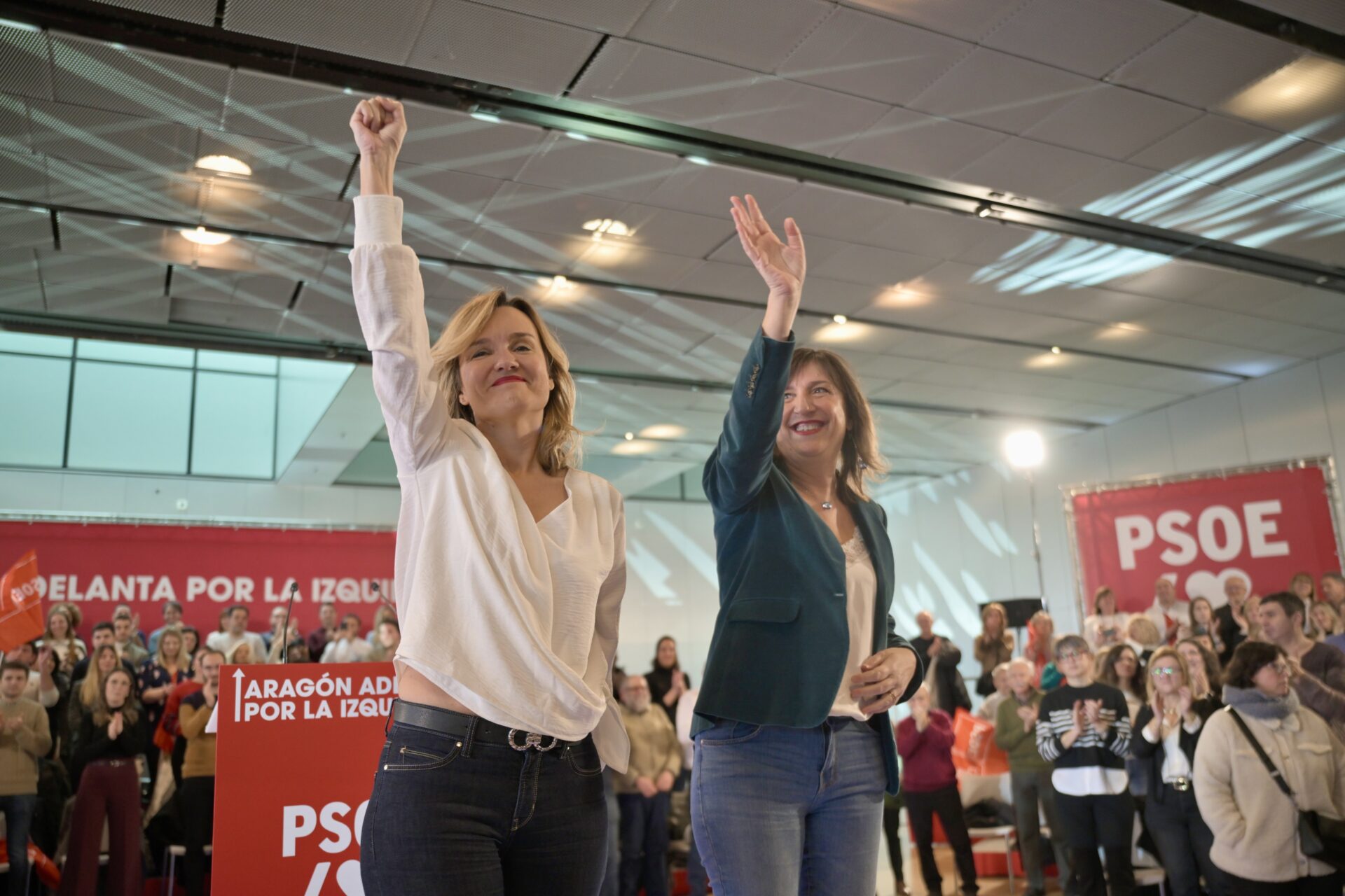 Alegría ha protagonizado un evento público en una sala del Palacio de Congresos de Zaragoza, con el lema Aragón adelanta por la izquierda , junto con la portavoz municipal del PSOE, y el alcalde de Soria, Carlos Martínez, donde ha tildado de Feijóo de «líder menguante», añadiendo que su política está «abonada a la crispación».