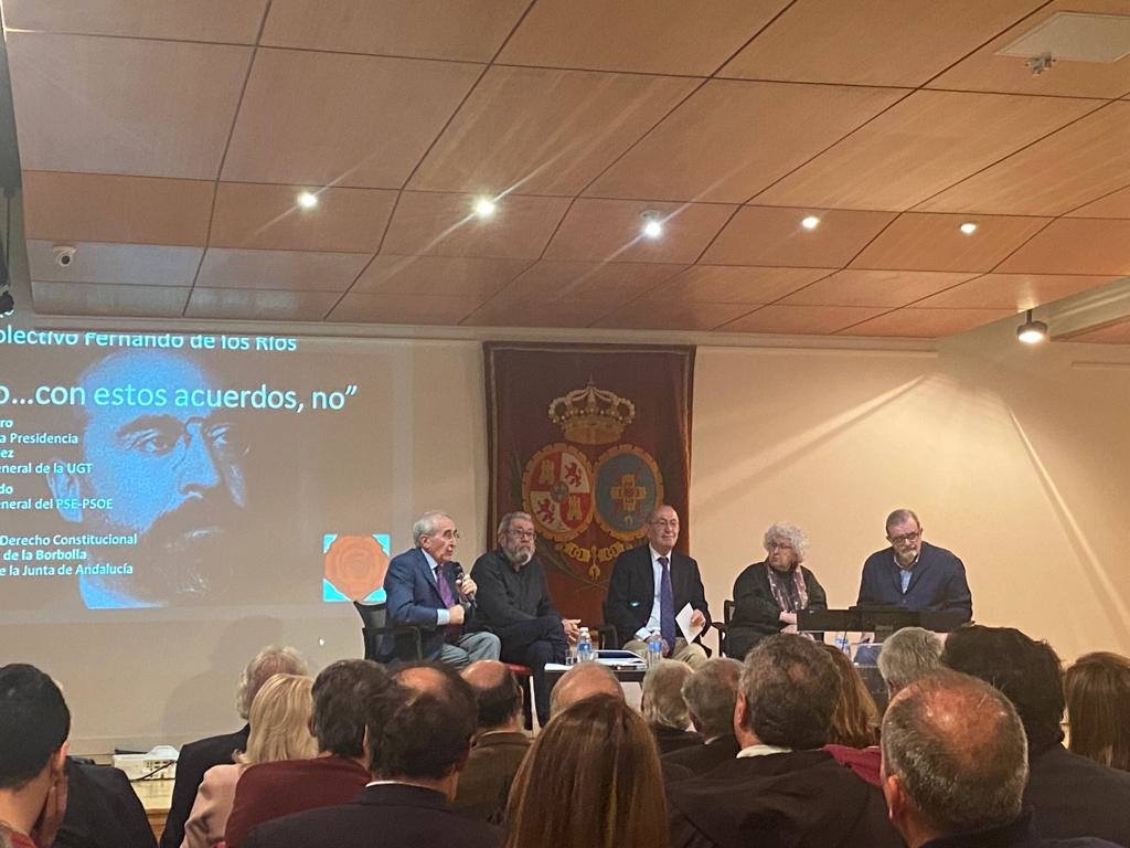 «Por desgracia, hemos vuelto a ser una anomalía en Europa», ha manifestado el ex secretario general del PSE-PSOE Nicolás Redondo durante su intervención como moderador en la mesa redonda Así no… con estos acuerdos, no , organizada por el colectivo Fernando de los Ríos, que se ha celebrado en la Fundación Carlos de Amberes y que ha contado con la participación de otros históricos socialistas como el exministro de la Presidencia Virgilio Zapatero, el ex secretario general de la UGT Cándido Méndez, la catedrática de Derecho Constitucional Teresa Freixes y el expresidente de la Junta de Andalucía José Rodríguez de la Borbolla.
