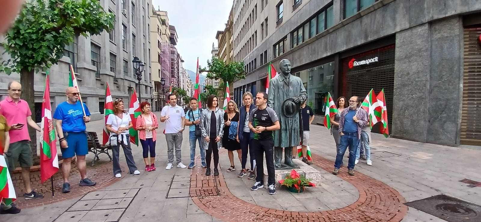 «Hoy que Irán ha sido atacado por Estados Unidos, conmemorando el llamamiento del lehendakari Aguirre desde el Hotel Carton a los batallones de gudaris para que fueran a defender a la población desde Artxanda, creeremos que es un día muy propicio para reclamar la paz, los derechos humanos y, desde luego reivindicar, que las cosas se consiguen hablando, negociando y nunca a través de las bombas», ha manifestado.