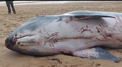 Aparece el cadáver de un cachalote pigmeo en la playa del Regatón de Laredo