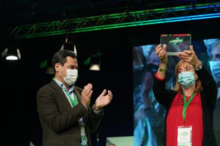 Emocionada, y tras una intervención en que ha remarcado la importancia de la vacunación de la sociedad andaluza en la lucha contra la covid-19, la doctora ha recibido de manos del presidente del PP-A y de la Junta, Juanma Moreno, una placa de reconocimiento en nombre de la formación, que ha querido simbolizar la continuación del aplauso a quienes batallaron contra el virus, que hace año y medio se hizo habitual en los balcones cada tarde.