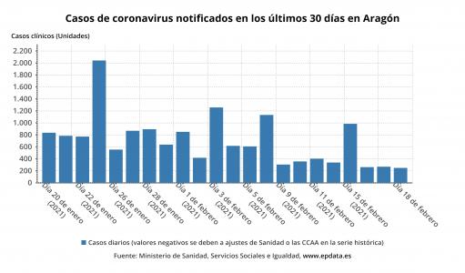 El Gobierno de Aragón ha confirmado 200 casos de la COVID-19, correspondientes a los resultados de 2.797 pruebas diagnósticas, conocidos este jueves, 18 de febrero, que han arrojado un porcentaje de positividad del 7,15 por ciento.