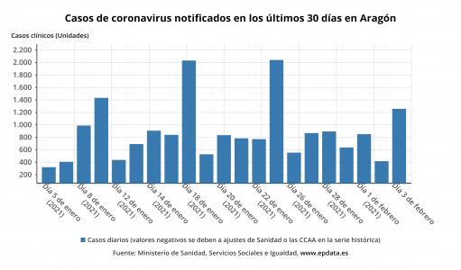 El Gobierno de Aragón ha confirmado 597 nuevos contagios de la COVID-19, correspondientes a los resultados de 4.835 pruebas diagnósticas, conocidas este miércoles, 3 de febrero, que han arrojado una positividad del 12,35 por ciento.