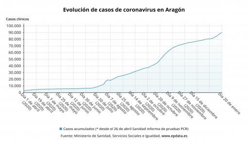 El Gobierno de Aragón ha confirmado 833 positivos de coronavirus SARS-CoV-2 en la jornada de este martes, 19 de enero, correspondientes a los resultados de 4.679 pruebas diagnósticas, cuyo porcentaje de positividad ha sido del 17,80 por ciento.