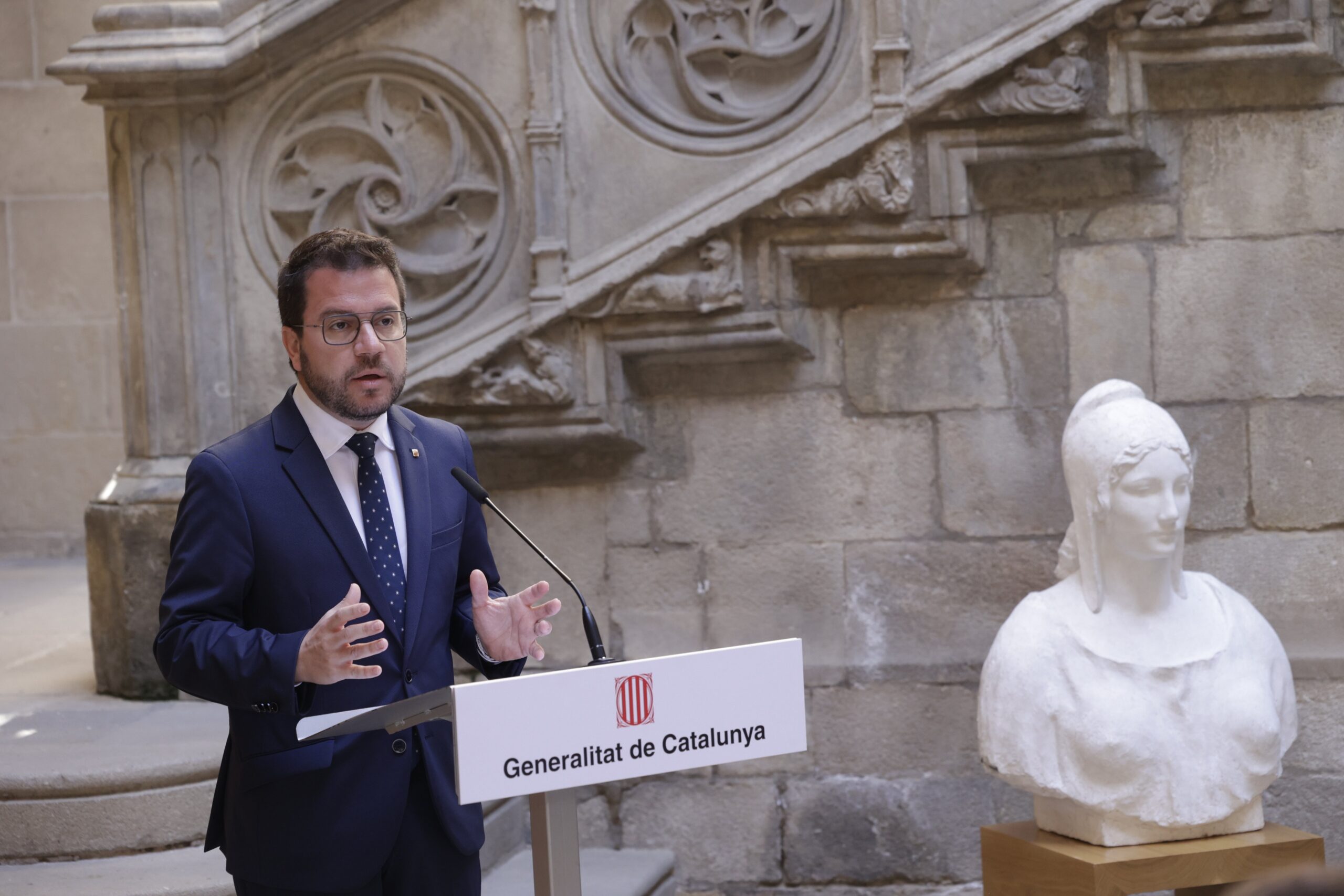 Pere Aragonès ha cerrado un acto institucional por este aniversario en el Palau de la Generalitat (desde donde Macià hizo su proclamación) junto a miembros de su Govern y con una intervención de la consellera de Justicia, Gemma Ubasart, y de la historiadora Mary Nash.