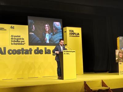 En un mitin en la Sala Crespi de Terrassa ante unas 50 personas, ha insistido en que estas elecciones van de una victoria de ERC, que ve como el único partido que puede poner de acuerdo a los que defienden la autodeterminación y la amnistía, o «la vía Vox, la que deja en manos de la extrema derecha la Presidencia de la Generalitat».