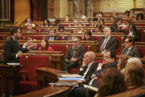 El presidente de la Generalitat, Pere Aragonès; el presidente de ERC en el Parlament, Josep Maria Jové, y el presidente del grupo de Junts, Albert Batet, han expresado este miércoles durante la sesión de control en el pleno su apoyo al diputado de ERC y miembro de la Mesa del Parlament, Ruben Wagensberg, tras el traslado de su residencia a Suiza.