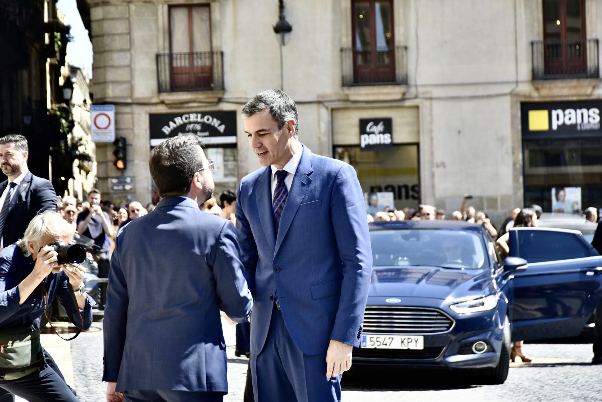 Aragonès recibe a Sánchez en la entrada del Palau de la Generalitat