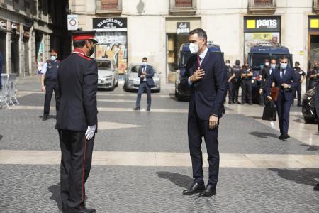 Previamente, a su llegada a la Plaza de Sant Jaume en la que se encuentra la sede de la Generalitat, Sánchez ha sido recibido con honores por el major de los Mossos d Esquadra, Josep Lluís Trapero.