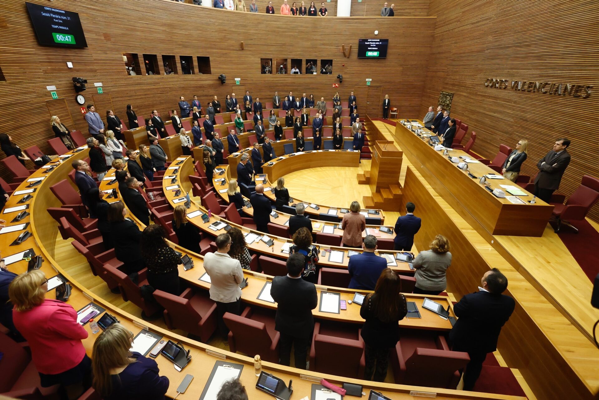 Los parlamentarios, en pie, junto a todo el Consell, han expresado en silencio el duelo por las personas fallecidas, así como la solidaridad con las miles de familias afectadas.
