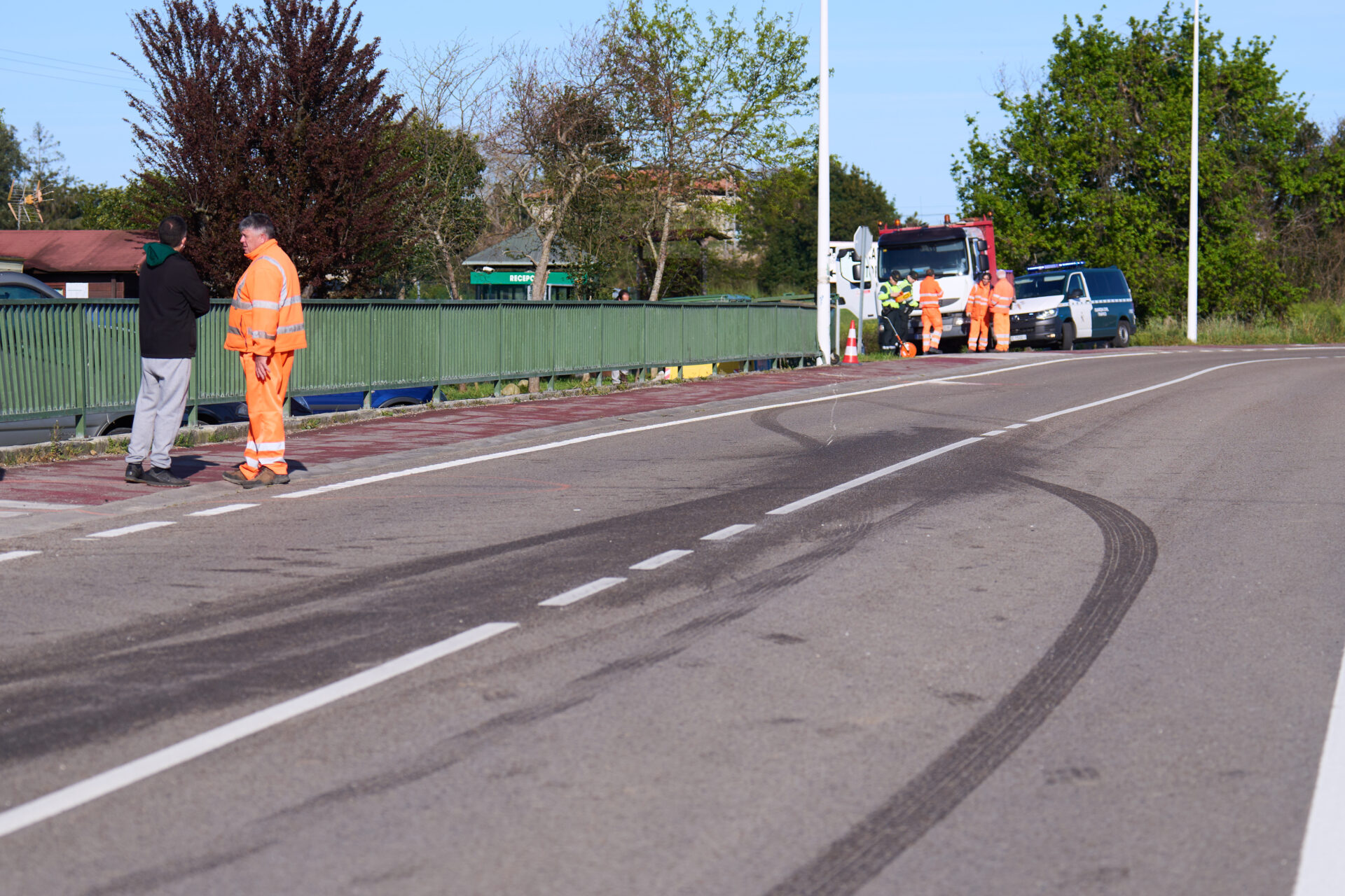 En esta maniobra atropelló a las tres personas que caminaban por una senda peatonal señalizada y adjunta a la carretera. A continuación, el vehículo sin control chocó contra una valla metálica y continuó circulando hasta colisionar con el vehículo que le precedía, que se salió de la vía.