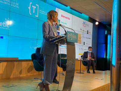Durante su discurso, Artigas ha hecho hincapié en la importancia de cerrar la brecha de género en la digitalización y ha incidido en el compromiso del Gobierno de lanzar 300 becas de investigación en tecnología, de las que el 50% serán para mujeres.