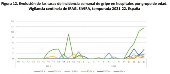 Igualmente, el informe advierte de que también se está produciendo «un aumento en las tasas de hospitalización por gripe, especialmente en el grupo de 80 o más años, seguido del de 65-79 años».
