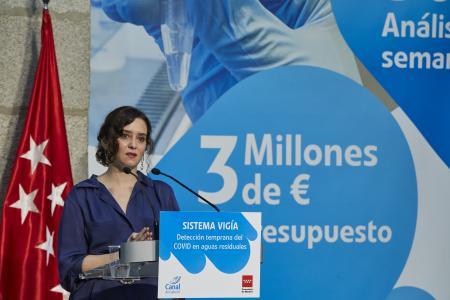 La presidenta de la Comunidad de Madrid, Isabel Díaz Ayuso, ha ensalzado el sistema Vigía de vigilancia de Covid-19 en aguas residuales, que lleva en funcionamiento nueve meses, tras la petición de la Unión Europea (UE) de crear este tipo de controles.