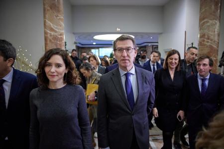 La presidenta de la Comunidad de Madrid, Isabel Díaz Ayuso, ha pedido al líder nacional del PP, Alberto Núñez Feijóo, que siga denunciando el «grave deterioro institucional» en España y ha censurado que tenga que soportar la «maquinaria gubernamental» en contra que «no permite ni siquiera que haya disenso o disparidad de criterios».