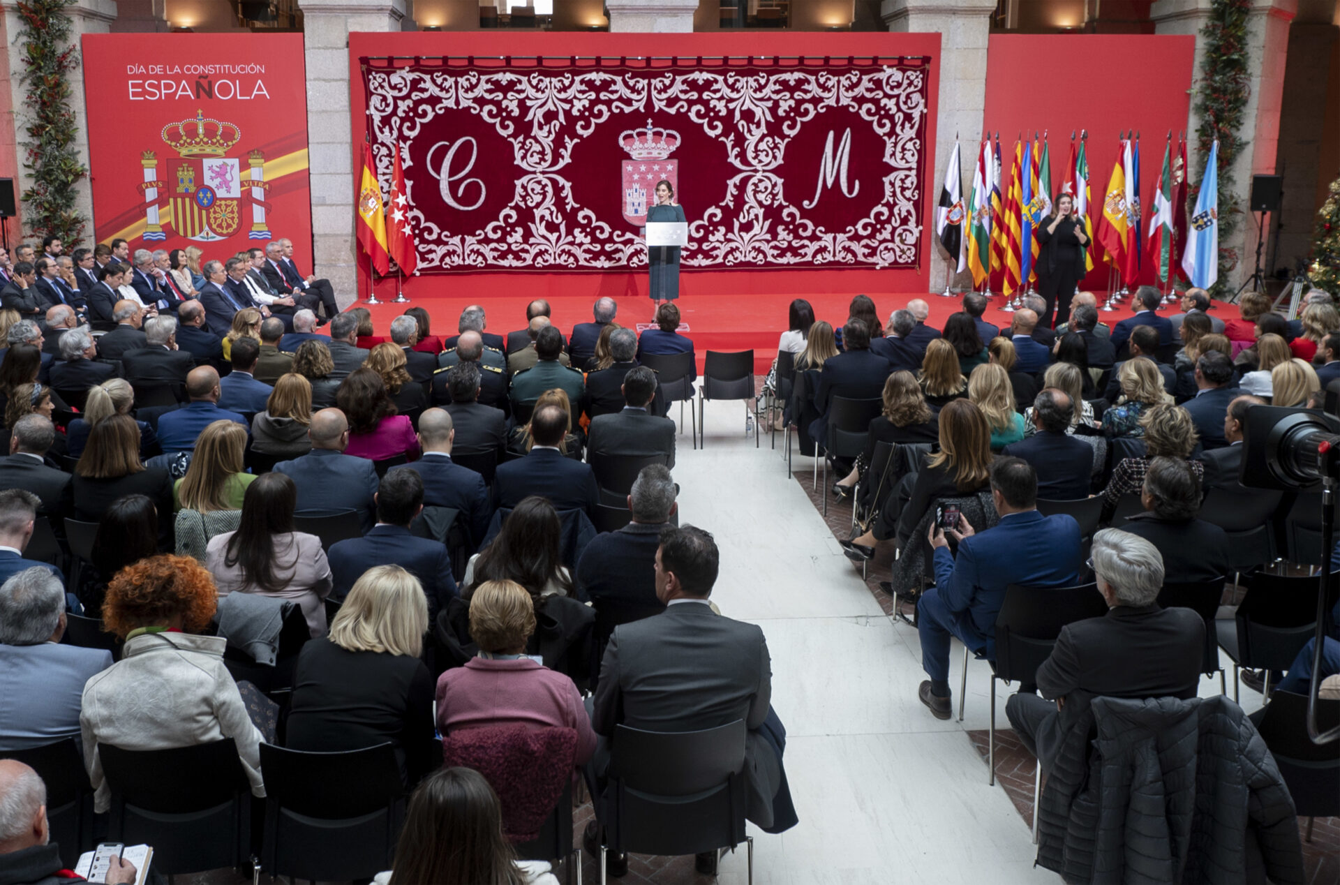La presidenta de la Comunidad de Madrid, Isabel Díaz Ayuso, preside este martes en la Real Casa de Correos, sede de la Presidencia autonómica, el acto institucional que organiza el Gobierno regional para celebrar el Día de la Constitución.