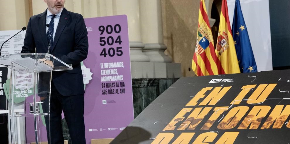 Azcón ha hecho este anuncio este lunes, durante el acto institucional por el 25N, Día Internacional de la Eliminación de la Violencia Contra la Mujer, que se ha celebrado en la sala de la Corona del Edificio Pignatelli. Este año, la campaña, recogida bajo el lema En tu entorno también pasa , se centra en que la violencia machista puede tener lugar en cualquier entorno y se puede dar de diferentes formas.