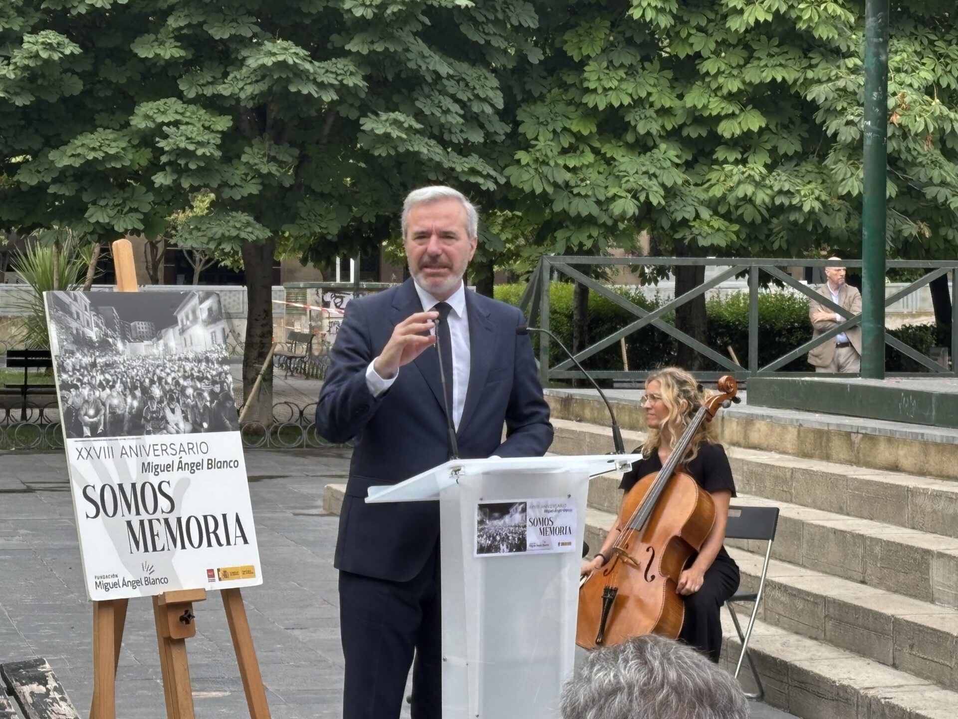 Azcón ha lamentado que muchos jóvenes desconocen la figura de Miguel Ángel Blanco y desconocen la importancia del Espíritu de Ermua y, a la vez, sigue habiendo homenajes y muestras de apoyo a terroristas de ETA, recientemente en Pamplona, durante las fiestas de San Fermín, «un acto miserable».