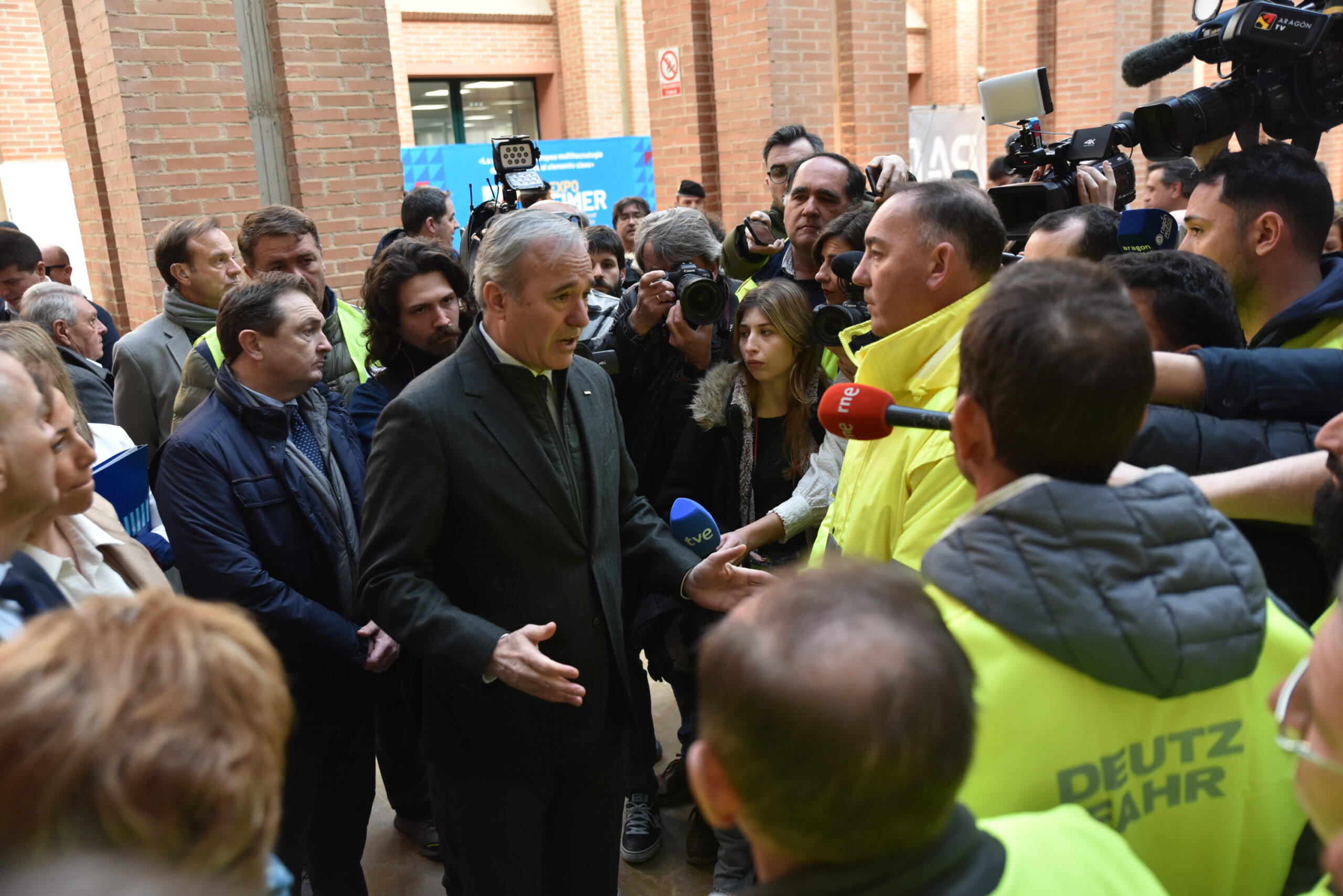 Antes de visitar la Feria Internacional de Maquinaria Agrícola (FIMA), en la Feria de Muestras de Zaragoza, Jorge Azcón ha declarado a los medios de comunicación que el sector primario «tiene razones» para movilizarse, como ha realizado un centenar de agricultores y ganaderos a las puertas de Feria de Zaragoza, sin incidente alguno, y después durante el recorrido que ha realizado Azcón y otras autoridades por los pabellones expositivos. «Están manifestándose de una forma pacífica, han respetado la FIMA», ha recalcado.