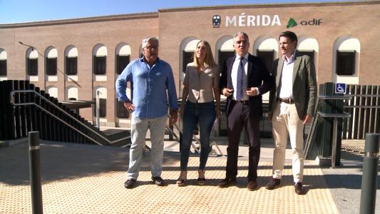 Elías Bendodo ha ofrecido este miércoles, junto a la presidenta del PP de Extremadura, María Guardiola, una rueda de prensa a las puertas de la estación de tren de Mérida porque, según han asegurado, no les han dejado entrar en estas instalaciones que son «un espacio público», aunque ha señalado que «el hecho de no poder entrar, no significa que no podamos hablar», ha destacado el dirigente del PP.