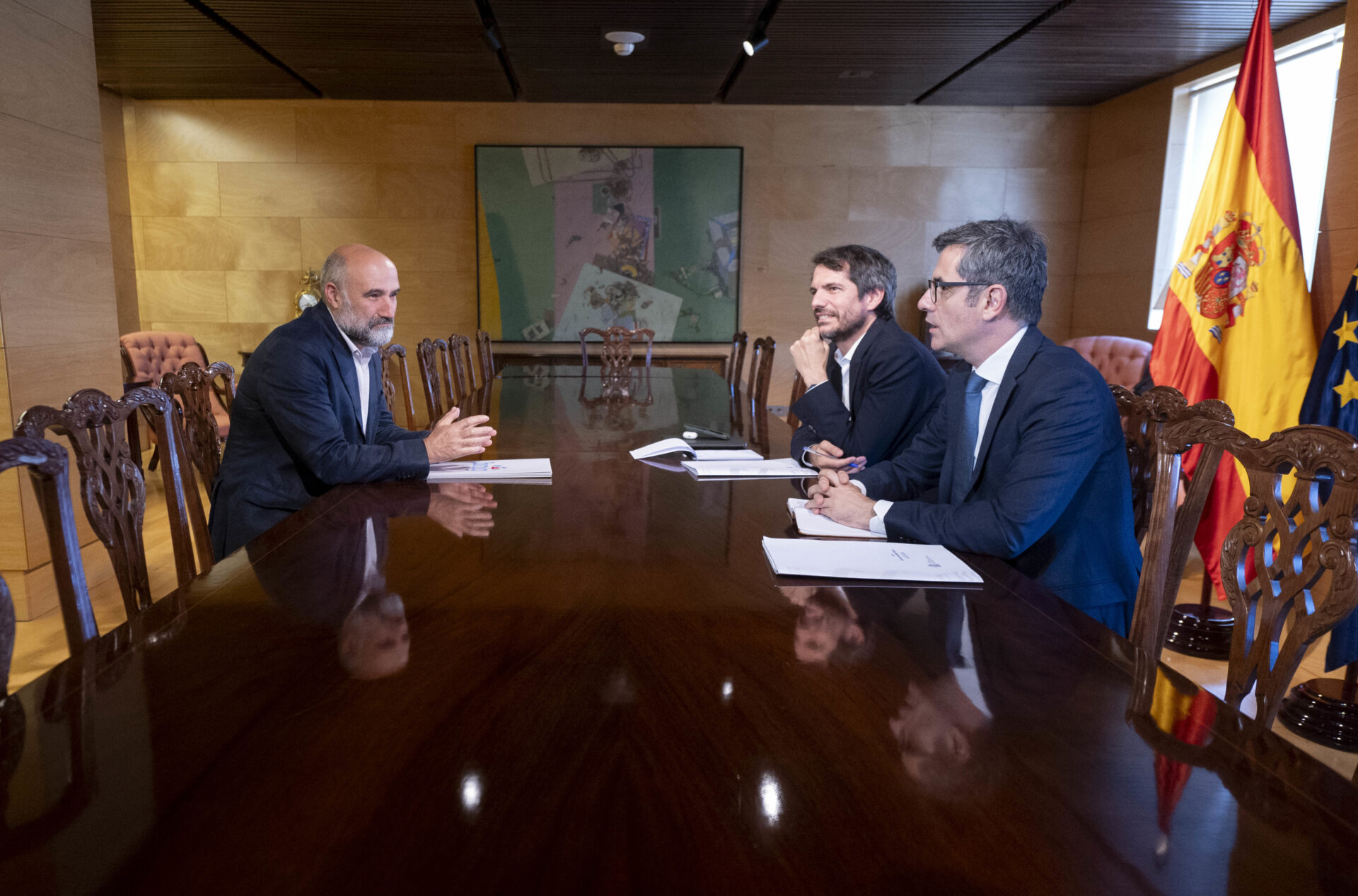 Así lo ha expresado ante la prensa tras la reunión con el ministro de la Presidencia, Justicia y Relaciones con las Cortes, Félix Bolaños y el ministro de Cultura, Ernest Urtasun, para avanzar en las medidas de regeneración democrática propuestas por el jefe del Ejecutivo, Pedro Sánchez, durante el Pleno del Congreso el pasado miércoles.