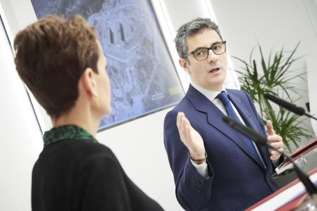 De este modo ha querido poner de manifiesto el «enorme cinismo de Feijóo» por celebrar la decisión del TC, que desoye el recurso del PP. «¿Por qué no lo retiraron?», ha cuestionado el ministro en una comparecencia junto a la presidenta de Navarra, María Chivite.