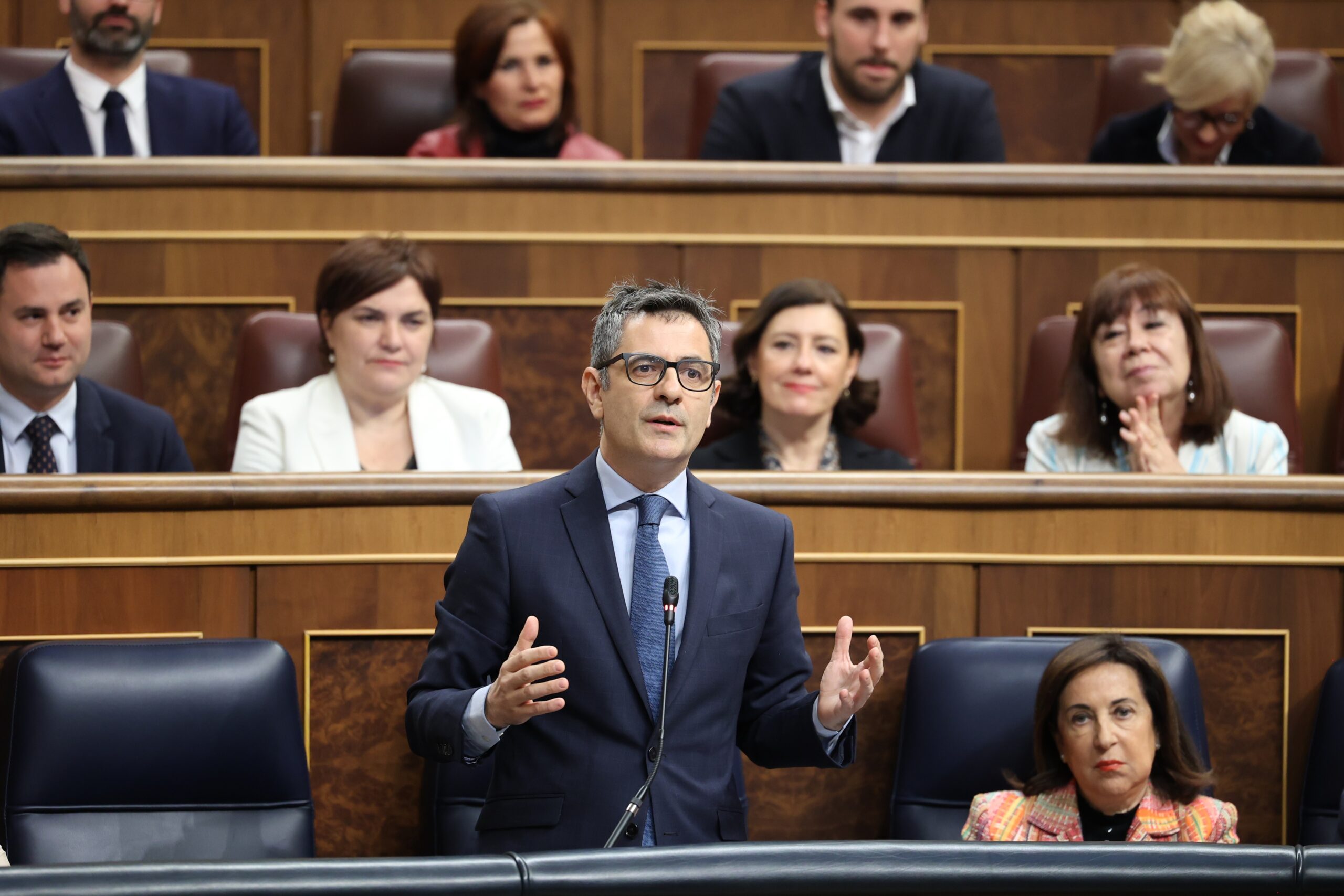 Bolaños también ha contestado a una pregunta de la portavoz de Vox, Pepa Rodríguez de Millán que le ha preguntado por los planes del Gobierno. El ministro ha echado mano del Plan Normativo para este año que prevé «casi 200 iniciativas para seguir transformando el país y ampliando derechos».