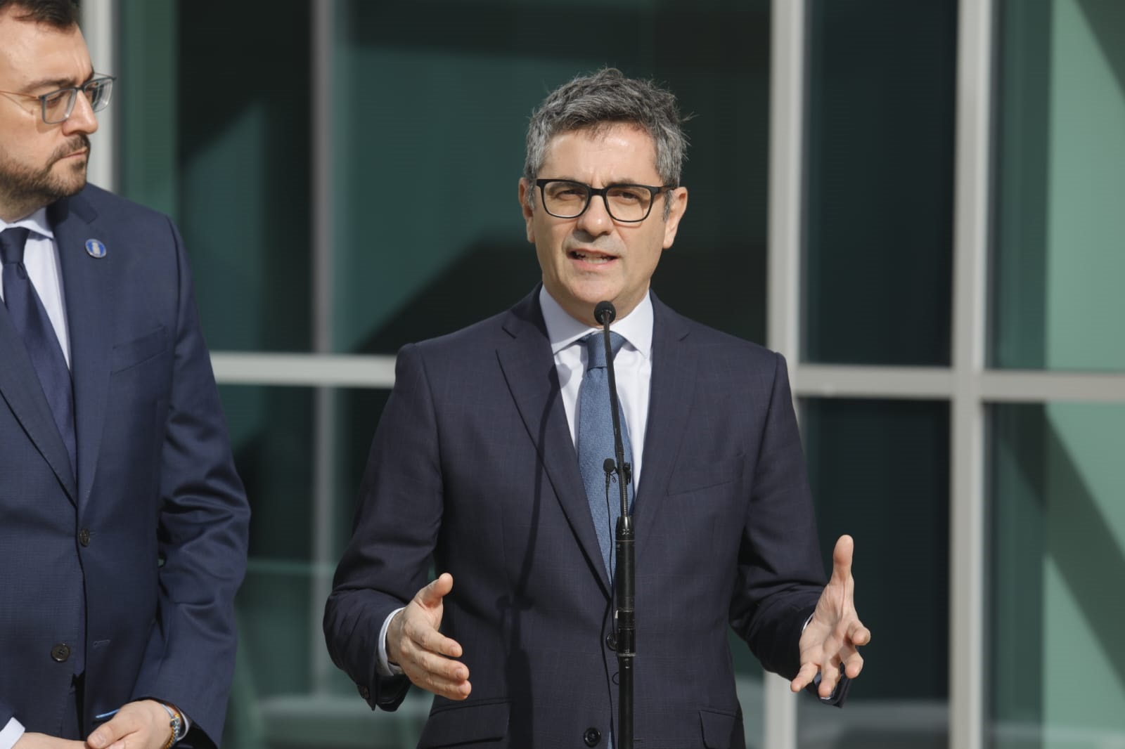 Junto a él ha estado presente el presidente del Gobierno asturiano, el socialista Adrián Barbón, que ha participado en el acto de inauguración de una sede judicial.
