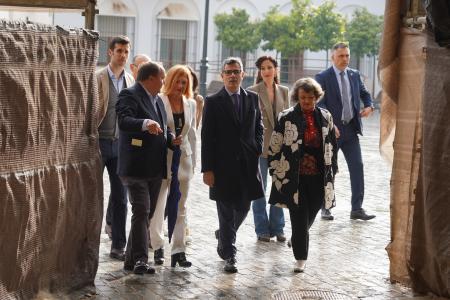 Antes de la reunión, el titular de Presidencia ha realizado un recorrido por la localidad. Tras ser recibido por la alcaldesa, Esperanza Caro de la Barrera, ha firmado en el libro de honor del Ayuntamiento y ha realizado un recorrido por el centro en compañía del cronista oficial de la Villa, Manuel Muñoz, y la subdelegada del Gobierno en la provincia, Rafaela Valenzuela.