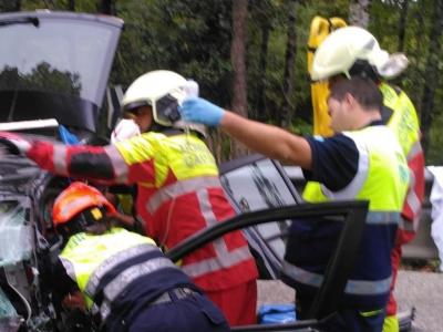 Bomberos del Servicio de Emergencias 112 Cantabria y de Torrelavega han excarcelado esta tarde a dos de los tres heridos registrados en un accidente, por la colisión de dos vehículos en Puente Viesgo, en el kilómetro 127,8 de la carretera nacional N-623.