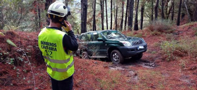 Bomberos rescatan a un conductor atrapado con su vehículo en una pista forestal de Liébana