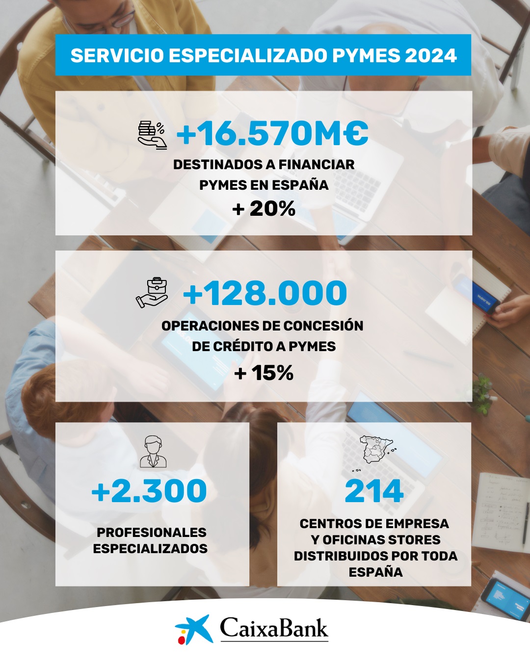 CaixaBank destinó 16.570 millones a financiar a pymes en España en 2024, un 20% más