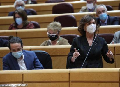 Preguntada sobre si se ha llamado la atención a Iglesias sobre estas declaraciones, Calvo ha respondido que «no», y que el vicepresidente es responsable de sus afirmaciones, como lo son todos los cargos públicos y los miembros del Gobierno.