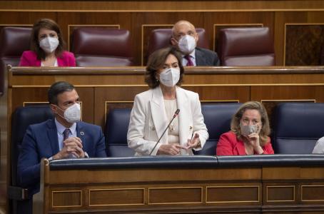 La vicepresidenta primera del Gobierno, Carmen Calvo, ha defendido este viernes que el objetivo del Ejecutivo ahora es restituir la relación con Marruecos tras el «asalto» a la frontera en Ceuta, pero ha rechazado que vayan a implicar al Rey para ello, al tratarse de una cuestión «política» que no se corresponde con sus funciones.