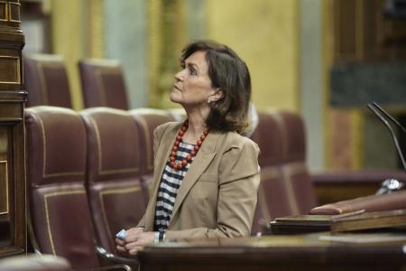 La exvicepresidenta del Gobierno Carmen Calvo ha asegurado este martes no entender que la ministra de Derechos Sociales y Agenda 2030, Ione Belarra, tache de «maquillaje» la decisión del Rey Felipe VI de hacer público su patrimonio, algo más de 2,5 millones de euros. «Si no se puede ser ministra de una monarquía parlamentaria y tomar posesión de tu cargo delante del rey, pues no se está», ha dicho.
