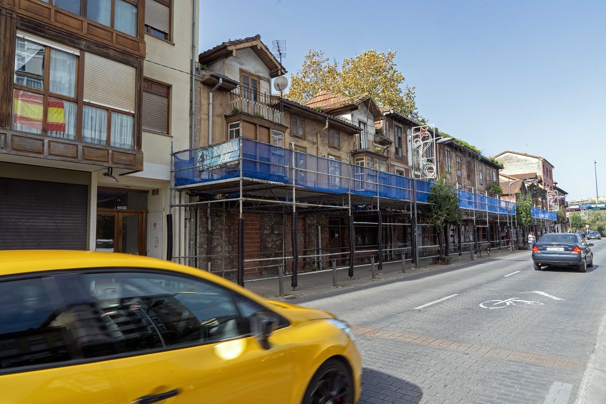 De hecho, hace unas semanas el Ayuntamiento adoptó la decisión de colocar un andamiaje a lo largo de esta calle para proteger de posibles caídas de cascotes, escombros y otros elementos de las fachadas a las personas que transitan esta vía, que une la zona del Centro Cultural La Vidriera con el Parque de Cros y que «es recorrida a diario por un gran número de peatones, además de vehículos».
