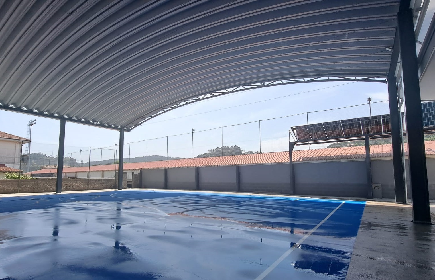 La pista con la nueva cubierta cuenta con cuatro vestuarios construidos mediante un sistema de edificación industrializada con paneles prefabricados, lo que ha permitido ganar en sostenibilidad, eficiencia y calidad.