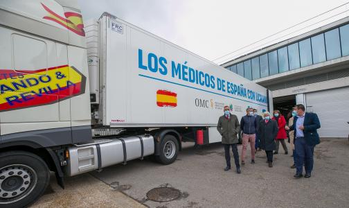 El vehículo, con 36 camas articuladas y 50 somieres y colchones, es fletado junto al Colegio de Médicos y la Organización Médica Colegial