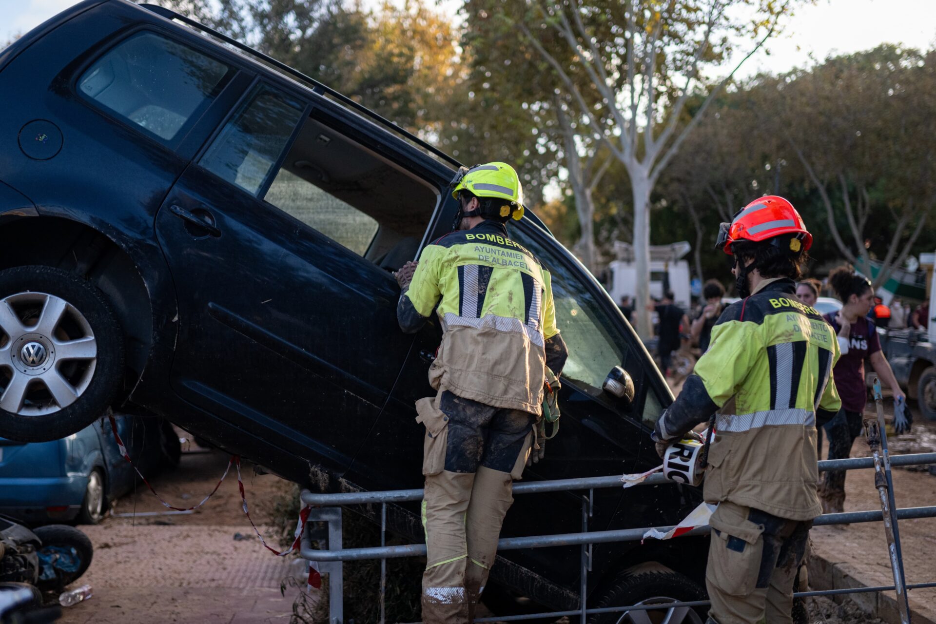 El primero, un vehículo auto bomba cisterna de agua con una dotación de dos bomberos con mangueras de achique, bombas de fangos y pronto socorro para desatasco de arquetas; el segundo, una bomba de gran caudal con una dotación de dos bomberos con mangueras y dos bombas de fangos y mangueras de achique, grupo electrógeno y bombas; el tercero, otra bomba de gran caudal con dos bomberos, dos bombas de fangos y mangueras de achique, grupo electrógeno y bombas; hay un cuarto vehículo y un jefe de parque para coordinar.