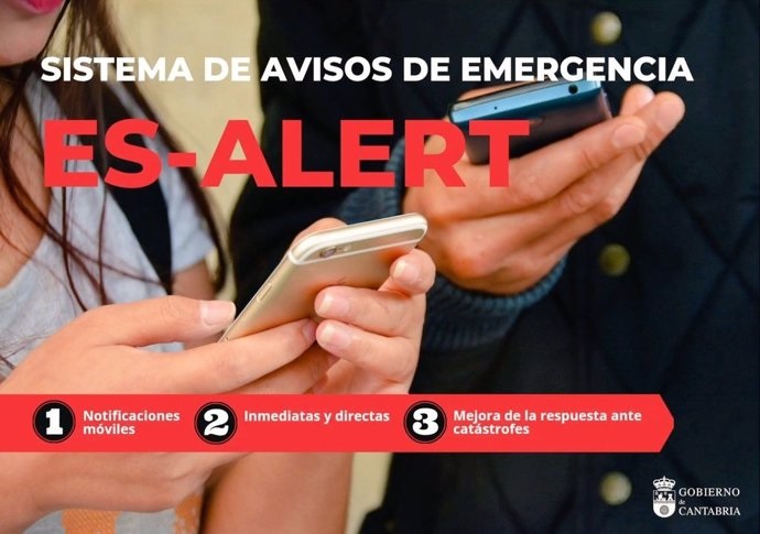 El Gobierno de Cantabria, junto al Ministerio del Interior, probará este martes, 25 de febrero, el sistema Es-alert de aviso de situaciones de riesgo a los móviles de la población en el entorno de Santander y Camargo.