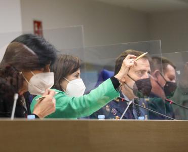 La ministra ha realizado este lunes una visita al Mando de Operaciones, en la base de Retamares, en Pozuelo de Alarcón (Madrid). Desde este lugar se coordina la misión Baluarte, centrada fundamentalmente en labores de rastreo de coronavirus en colaboración con las comunidades autónomas.