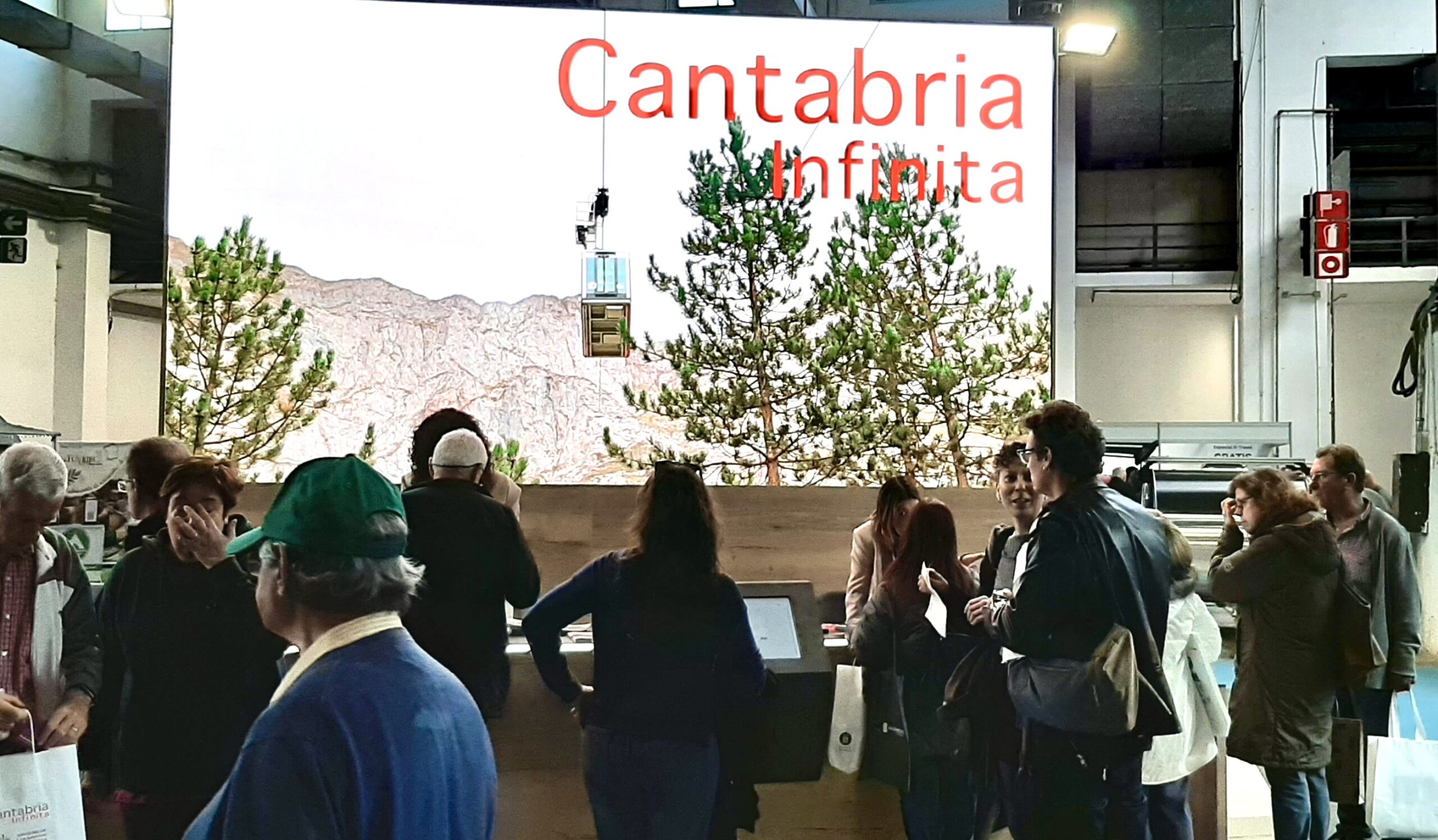 El elemento principal del estand cántabro en B-Travel es una pantalla de gran tamaño, que muestra imágenes de los recursos de las comarcas y municipios de la comunidad autónoma.