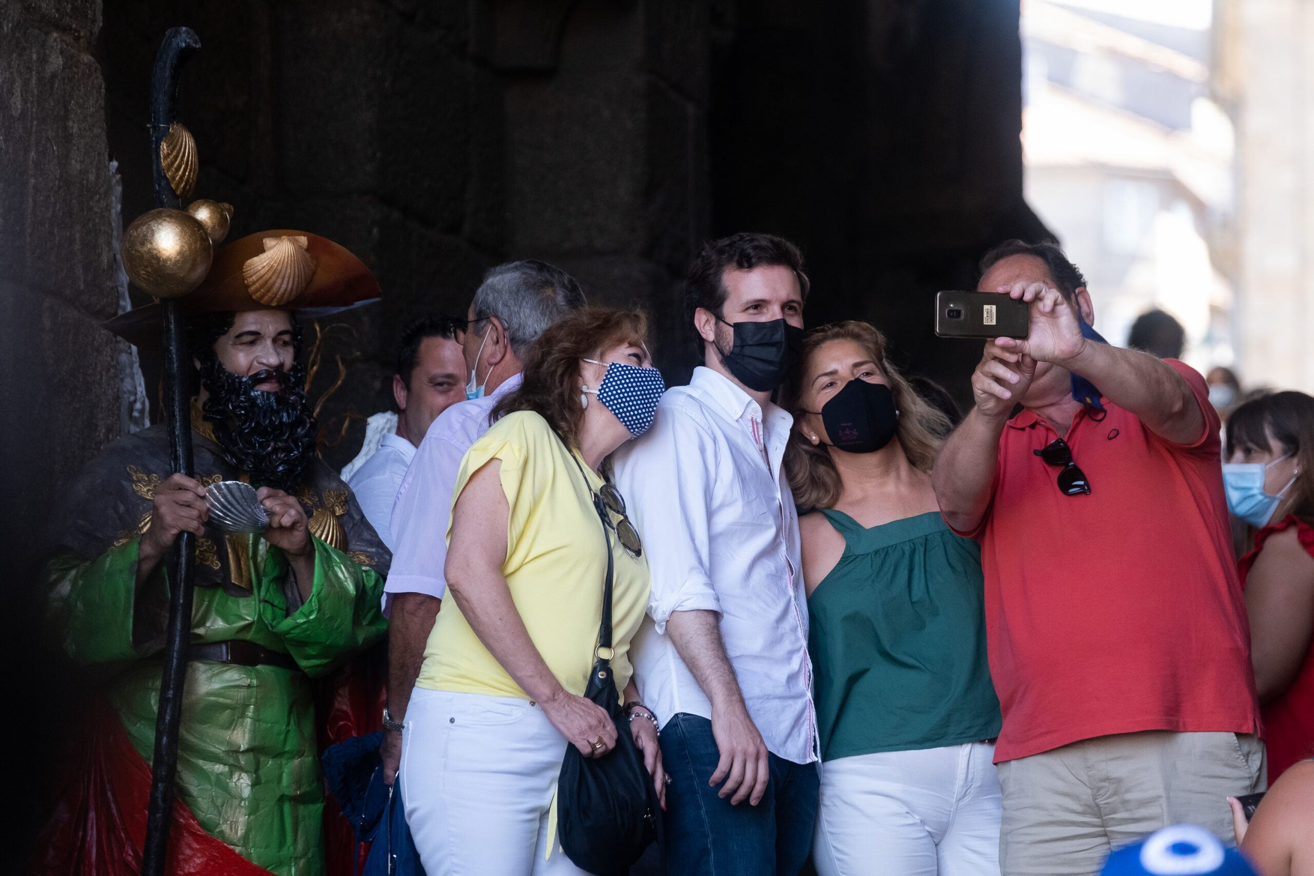 Casado asiste a la misa del peregrino y se fotografía con turistas en Santiago: «Pablo, hay que arrasar, como en Madrid»