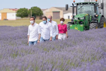 Coincidiendo con los días de la floración de este año, el líder de los populares ha paseado por los campos de lavanda, donde ha podido comprobar in situ la cosecha de esta planta e incluso se ha subido, junto al presidente del PP en Castilla-La Mancha, a un tractor.