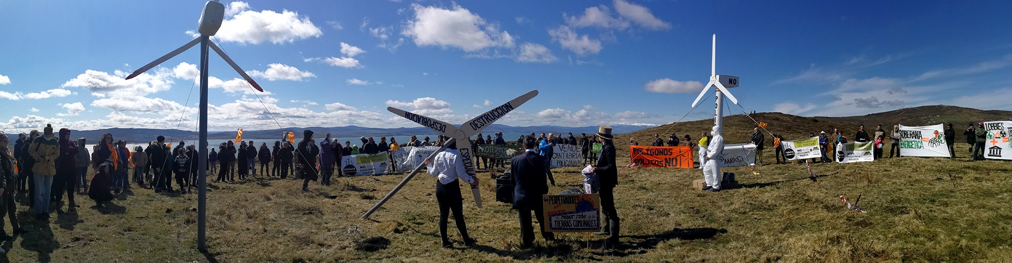 Han explicado que la movilización se celebró después de que los sondeos de este parque eólico se retomaran el 14 de noviembre, dos semanas después de que el 31 de octubre la Comisión Regional de Ordenación del Territorio y Urbanismo (CROTU) autorizara la construcción de este parque eólico «a pesar de los votos en contra de los colegios profesionales y de que varias juntas vecinales propietarias de los terrenos y algunos ayuntamientos afectados se hayan manifestado en contra en sus concejos y plenos a dar el permiso para la ocupación ilegal de sus montes para este polígono eólico».